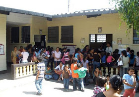 As soon as I get Bekah out of the car seat, everyone else in the parking lot read my mind. Some reach the door before me. There is a small crowd. At least 15 adults and as many children. We are standing in a semi cirle around the door. The atmosphere was not quite tense but, not quite laid back either.